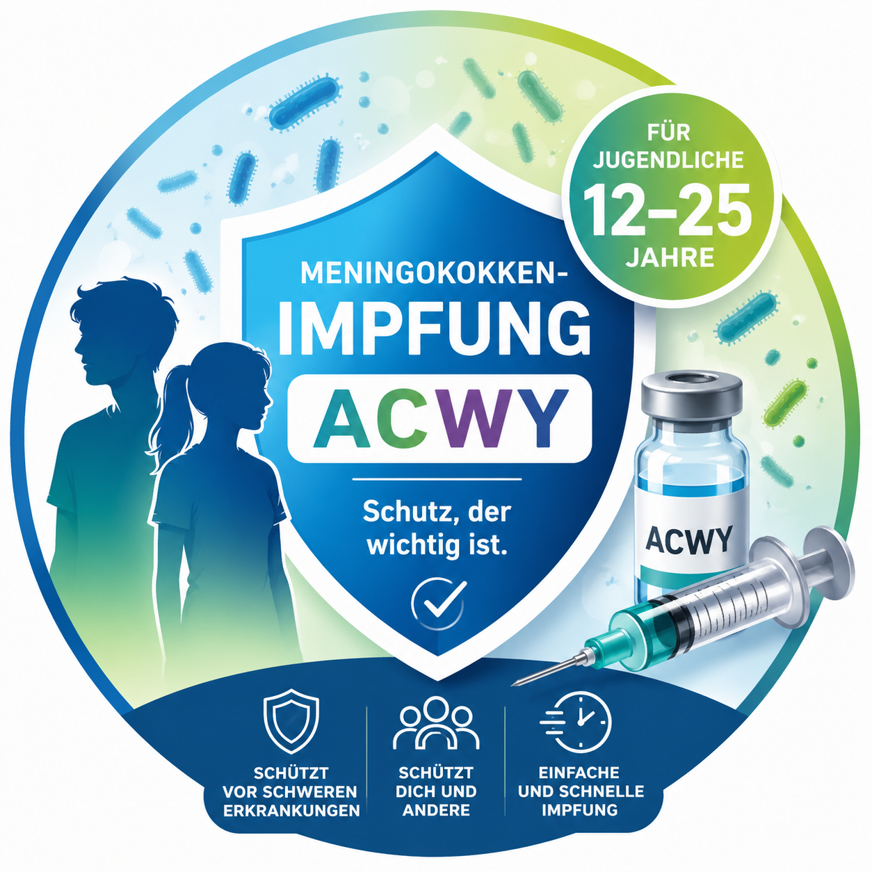 Mit nur einer Impfung gegen die häufigsten Arten der Meningokokken (Typen A,C,W,Y) reduziert man das Erkrankungsrisiko deutlich und kann sich und andere schützen.